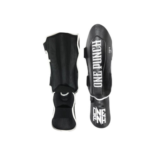 NS-20 nagolenniki ze skóry syntetycznej posiadają bardzo twardy wkład z dodatkowym wzmocnieniem na piszczel. Dostępne w kolorach białym i czarnym z nadrukiem "ONE PUNCH"